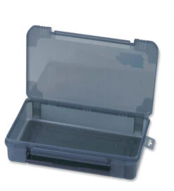 Astuccio rigido con due vani principali di cui uno completo di 10 buste staccabili in PVC richiudibili, e l’altro contenente una scatola in plastica suddivisibile a scomparti.