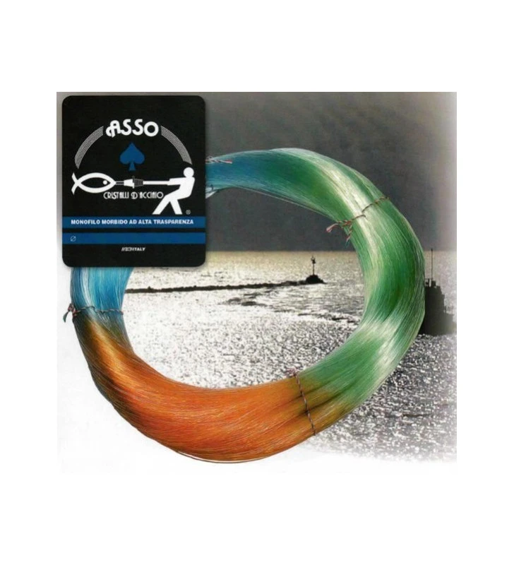 Asso Spades cristalli di acciaio è un monofilo in nylon di prima qualità ideale per il mondo della pesca professionale. La sua extra morbidezza lo rende adatto sia alla madre sia ai braccioli dei palamiti. Utilizzabile facilmente anche da pescatori alle prime armi in quanto grazie alla sua eccezionale morbidezza si adatta perfettamente alla cesta. Non fa parrucche e stira perfettamente. L’elevata resistenza al nodo lo rende adatto alle tecniche di pesca più impegnative.