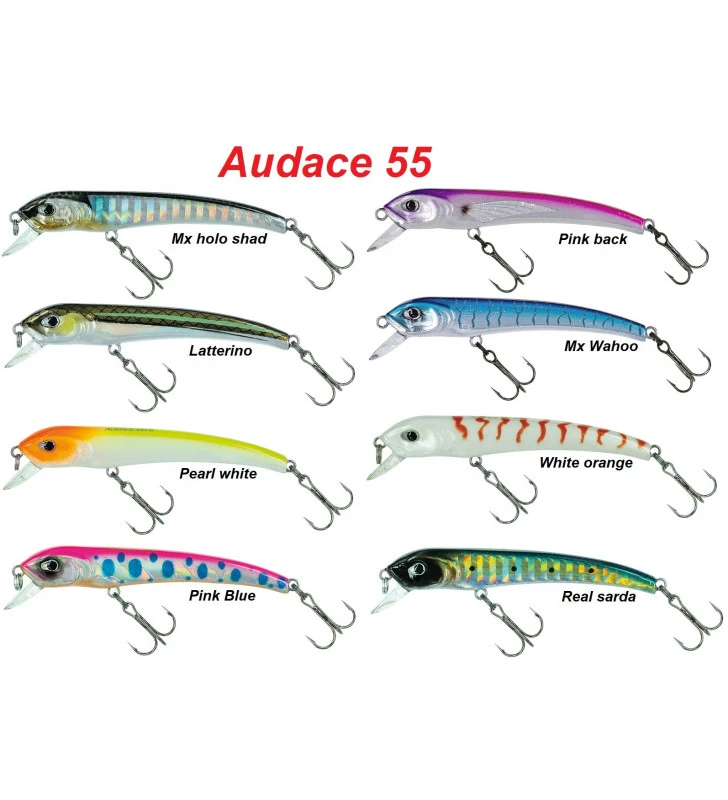 L’Audace 55 sinking è adatto alla pesca di Trote, Lucioperca, Persici, Bass, Aspi oppure per il Rock Fishing in acqua salata.