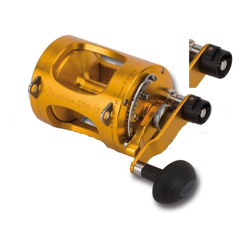 La Serie Poseidon viene presentata anche nella versione a doppia velocità, la riduzione del rapporto diventa un arma in più quando si devono gestire lunghi combattimenti con prede importanti. Il pulsante posto sull’asse della manovella consente di mutare immediatamente il rapporto di recupero passando dal rapporto veloce ad uno lentissimo super potente. Il corpo è stato ricavato al tornio, lavorato CNC, da un unico blocco di lega di metallo. Stesso tipo di lavorazione per la bobina prodotta in alluminio. Le piastre laterali, forgiate a freddo completano la scocca esterna di questo moltiplicatore. La frizione dotata di un disco in carbonio ad alta dispersione termica garantisce una fuoriuscita dolce e fluida del filo senza creare fastidiose frenate anche dopo lunghe ore di combattimento. La leva di comando della frizione, in alluminio, garantisce una perfetta regolazione grazie al sistema di comando preimpostato. I quattro cuscinetti a sfera in acciaio inox protetti, il meccanismo free spool, l’albero in acciaio inox, il piede di fissaggio alla canna e le alette in acciaio inox, la manovella ergonomica in morbido TPR, il cicalino che segnala immediatamente l’attacco del pesce anche in presenza di rumori di fondo, fanno del POSEIDON un compagno inseparabile per le più emozionanti battute di pesca. Per rendere le vostre battute di pesca ancora più performanti si consiglia di bobinare il POSEIDON con il monofilo RED DRAGON specifico per questo tipo di pesca.