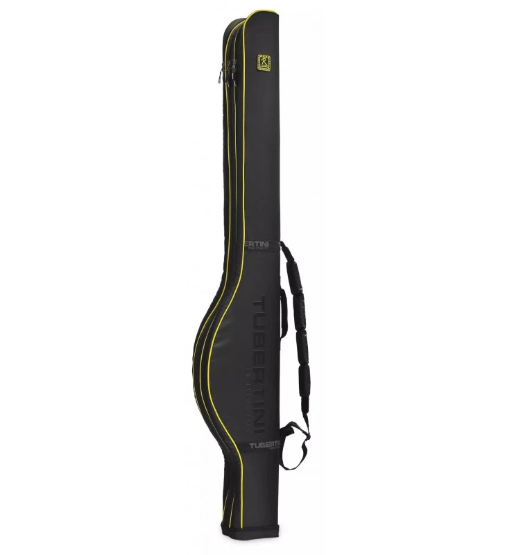 per trasportare in sicurezza canne con mulinello come bolognesi, inglesi e feeder ottimizzando inoltre l’ingombro totale. Il fondo è in materiale rigido antisfondamento, tessuto R lavabile di altissima qualità rifinito con il logo Tubertini ricamato in nero tono su tono, spallaccio e maniglia realizzati con il nuovo nastro personalizzato Tubertini.