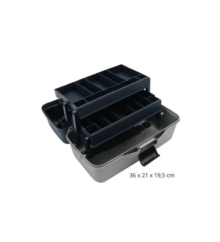 Valigetta in plastica da pesca, questa valigetta da pesca è dotata di un interno a 3 ripiani con scompartimenti per riporre la propria minuteria da pesca, ampio spazio sul fondo.
