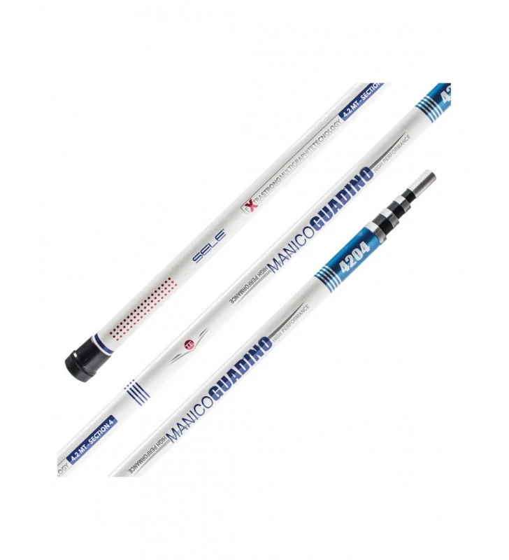 Sele Manico da guadino in fiberglass con rinforzi in metallo in ogni sezione e boccola universale.