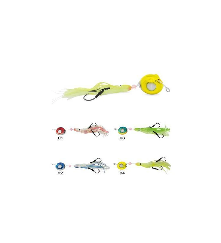 Tai rubber con squid siliconico di colore abbinato alla testa e parti glow, ottimo per la ricerca delle prede più grandi. Innovativo Tai rubber costruito in Zinco, materiale ecologico con il quale si riescono ad ottenere finiture e particolari assolutamente perfetti. Il foro smussato e largo garantisce il perfetto scorrimento del filo all’interno della testa impedendo quindi alla lenza madre di intaccarsi.