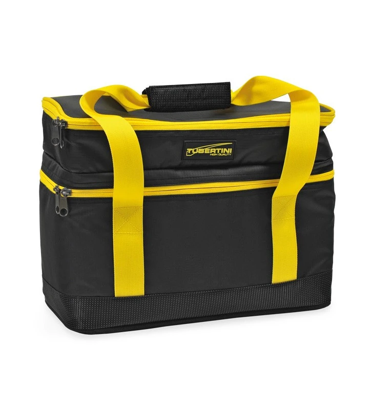 Borsa termica doppio scomparto ideale per trasportare contemporaneamente sia esche che bevande e cibo grazie ai due scomparti completamente separati tra loro. L’isolamento termico è garantito dal rivestimento interno in lamina isolante di prima qualità.