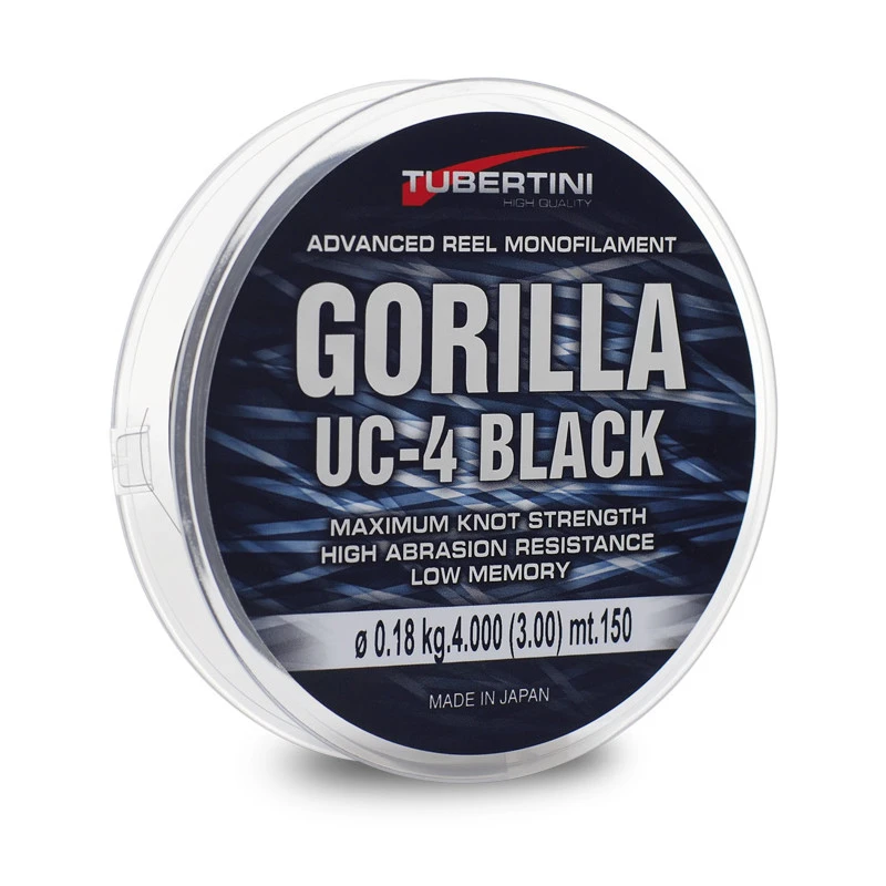 Da sempre uno dei monofili Tubertini più famosi ed utilizzati, il Gorilla è un nylon dalle alte prestazioni: leggero e morbido, per favorire la scorrevolezza in fase di lancio, ha un carico di rottura al nodo elevato ed una ottima resistenza all’abrasione, inoltre la scarsa memoria meccanica permette una imbobinatura perfetta sul mulinello. La sua versatilità ed il range di diametri disponibili, lo rendono ideale per tutti i tipi di pesca sia in acqua dolce che in mare.