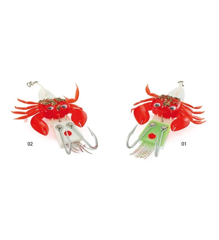 Polpara zavorrata con piombo antiribaltamento, è armata da una coppia di ami zincati estremamente affilati e robusti. Per aumentarne l’attrattività monta un granchio artificiale particolarmente realistico dotato di occhi mobili e ricoperto di ghiaia oltre ad una skirt riflettente. Estremamente adescante è adatta a qualsiasi tipologia di fondale, sia sabbioso che misto, essendo anti-incaglio si utilizzata a strascico trascinandola sul fondale dalla spiaggia, dalla barca o dalla banchina per creare nuvole di sabbia attiranti.