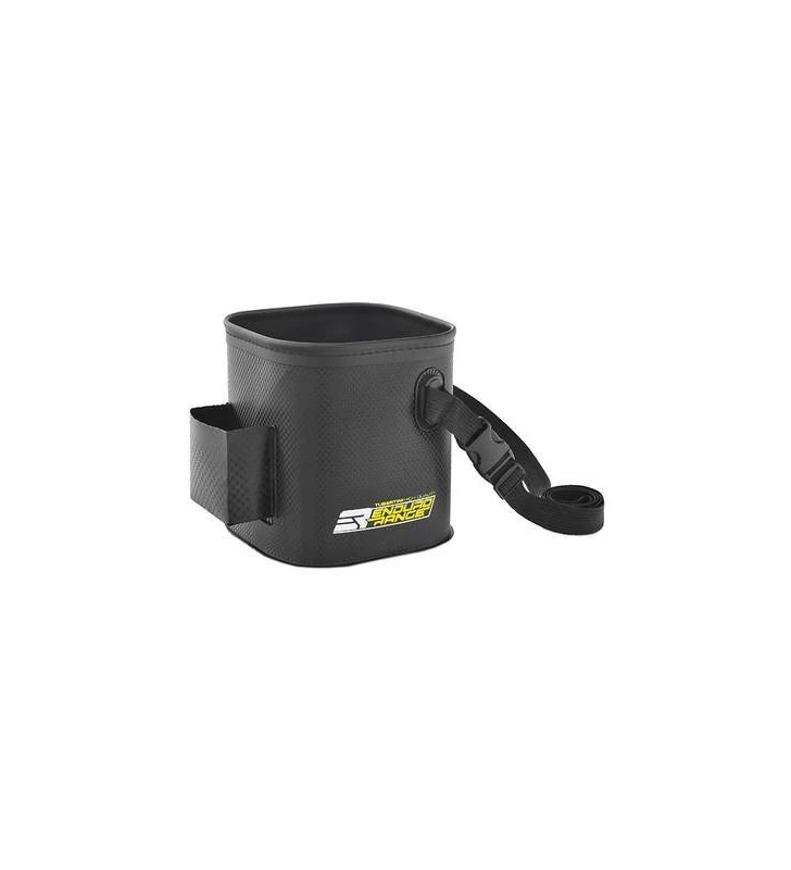 Secchiello porta bigattini in PVC termosaldato “effetto carbonio” con tracolla e tasca porta fionda.