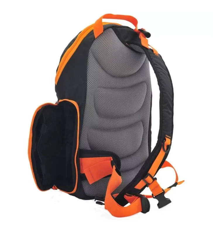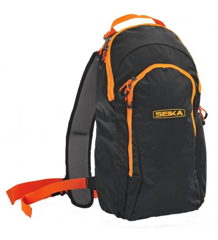 Zaino monospalla pensato per il pescatore a spinning dotato di tre vani, di cui quello più grande ad accesso laterale.