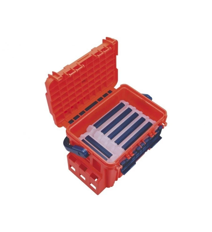 Meiho è una valigetta rigida utile in ogni spot di pesca. Sia per la barca che per la riva, possiede uno spazio interno molto ampio facile da allogiare accessori di vario genere in completa sicurezza, apertura a coperchio da entrambi i lati. Può essere utilizzata come sedia e grazie agli appositi accessori, acquistabili a parte può essere completata con cuscino, porta canne, porta esche, porta canne.