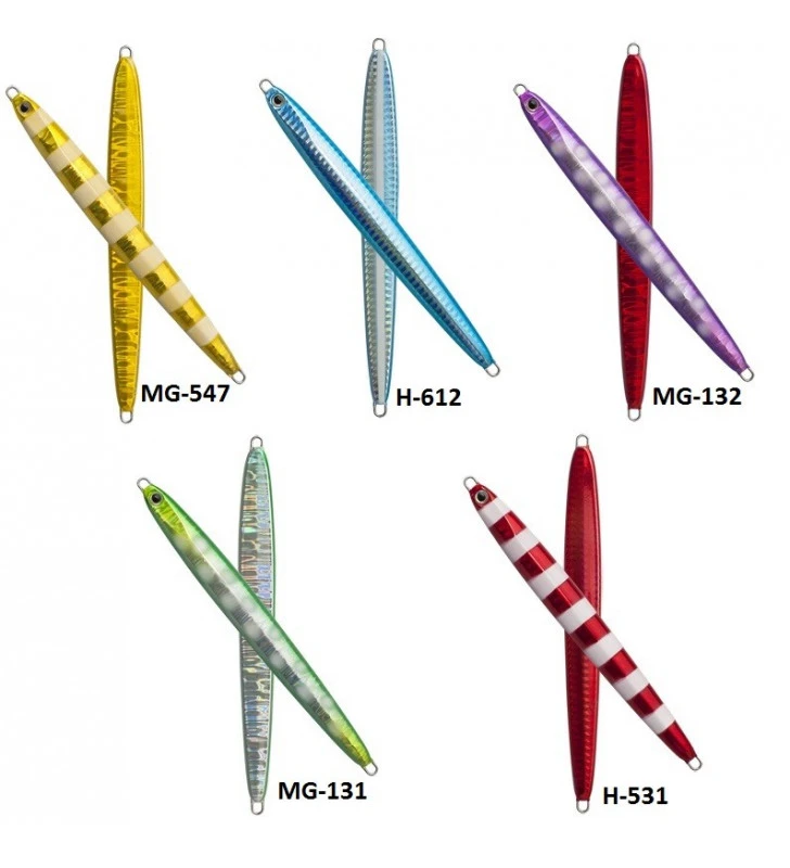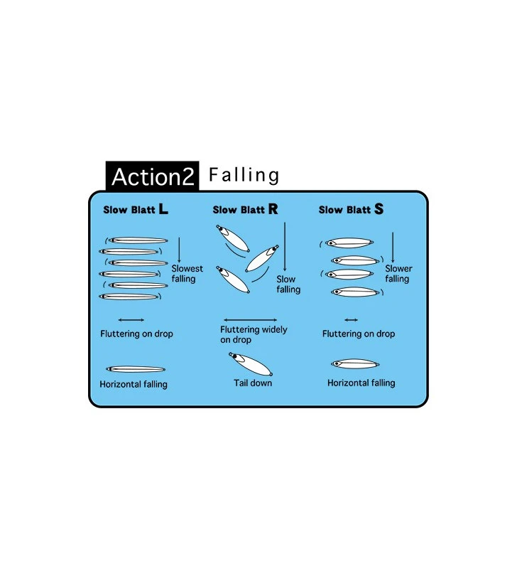 Slow Blatt di Zetz, è un jig metallico pensato per le moderne tecniche di jigging, disegnato per massimizzare l’ effetto a “foglia morta” della caduta e prodotto con colorazioni capaci di dar vita ad una “flashing action” irresistibile per i predatori, anche in condizioni di scarsa luce. Ne esistono diverse versioni: il modello S, con bilanciamento dei pesi centrale, per garantire una caduta pressochè orizzontale, e con forma asimmetrica del corpo, per un affondamento irregolare che massimizzi le specchiate; il modello R, con un profilo assottigliato verso la testa, per aumentare l’irregolarità dell’azione in acqua, sia durante le jerkate che in fase di caduta, pensato appositamente per lo “slow jigging”, ultima evoluzione della pesca vertical,efficacissima per i predoni mediterranei e modello L, il long in discesa e come un tradizional jig ma in risalita cambia conpletamente schizza a destra e sinistra rendendolo irresistibbile. L’artificiale non è provvisto di ami assit, che vanno acquistati a parte.