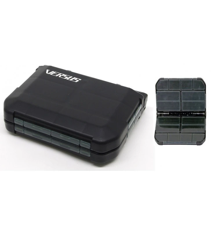 Scatola Meiho adatta per stoccare piccola minuteria (girelle, ami, ecc). Apertura a libro. Di piccole dimensioni per un facile stoccaggio ovunque.